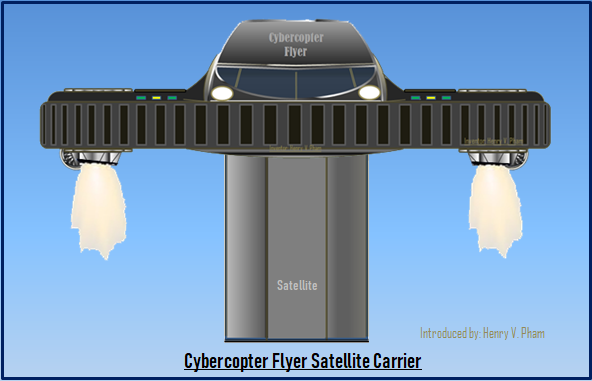 The Cybercopter Flyer can deploy satellite into space right at the Space Launcher Site or right on the Mobile Space Launcher with the pre-built stands to raise the Cybercopter Flyer to the high of the Satellite before the flight. The Space Cybercopter Flyer/Carrier is Very Important Program; the (VIP) Program for a great nation. The Cybercopter Flyer can fly back the the launcher with its own Standier, can be customized Standier with 4-legs in retractable/controllable square tube, to land anywhere or can be landed right back to the launcher with the accurate Positioning System which was introduced in the LPS - Local Positioning System invention with International Patent Number PCT/IB2021/000949 that was submitted on 2021/11/23 which was posted on www.TheCloudOSCenter.com. The Octagon Satellite introduced here can be built with Solar Panels Stack on top and right below with the Satellite Dishes Stack which can be expanded for operating after deployed into space, and can be built with the arms that can automatically tilt Solar Panels to adjust the Sun Light directly beams vertically on surface of the panels. The Octagon Satellite is shown with Octagonal Base Shape which provides better for mechanical motions for extendable length satellites that need to slide the tube up or down. The Octagon Satellite is suggested to have 4 Satellite Dishes (SAT-2-SAT Dish) stacking on top for development easier to communicate to other Satellites with one built-in for Ground Communication and with additional Upper Beam Dish which is nice to have for preparation for upper-level Satellite Communication or preparation for the Future Universe Exploration and recommended to use G-ROUTING ALGORITHM invention with International Patent Number PCT/IB2022/000800 that was submitted on 2022/12/23 for Satellite Networking. The Cybercopter Flyer not only useful for Air Transportation, Space Exploration and Satellite Carriers, the Cybercopter Flyer can be used as a Space Laboratory. The Octagon Satellite as shown below could be built with 4 thrusters which shown in the drawing are used to adjust the altitude or position of the Satellite on demand...